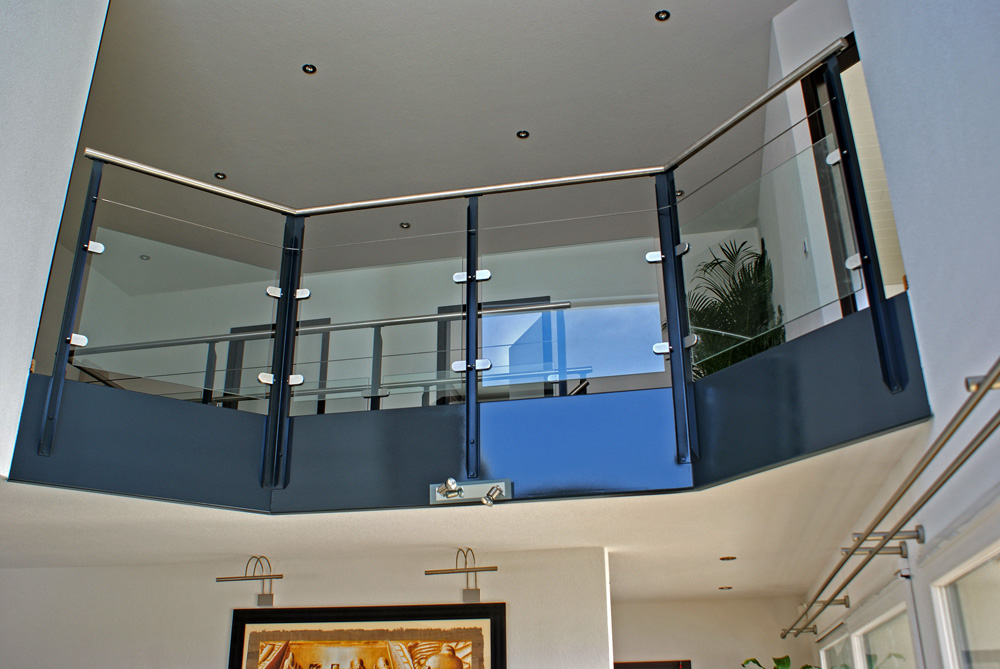 Pour les parties horizontales, nous avons placé un verre feuilleté transparent avec 1 câble au-dessus.