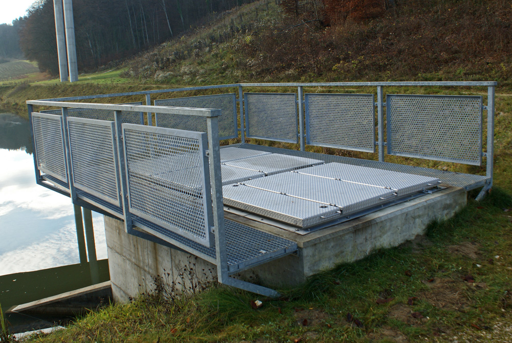 Nous avons créer une passerelle en grille caillebotis, qui permet au personnel d'entretien, d'avoir de la place autour des couvercles, pour accomplir leur tâche.